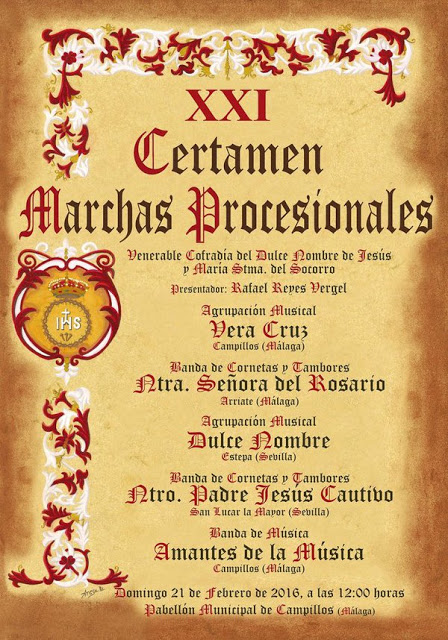 Como viene siendo habitual, la Hermandad también ha querido contar con la participación de corporaciones musicales del municipio como son la Agrupación Musical Vera+Cruz, que se encuentra en su Trigesimoquinto Aniversario durante este año, y con la Banda de Música «Amantes de la Música». De esta forma, la mayoría de los estilos musicales procesionales se concentran en un mismo certamen que tendrá lugar en este año el próximo domingo 21 de febrero a partir de las 12.00 en el Pabellón Municipal, donde Rafael Reyes Vergel se encargará de su presentación.