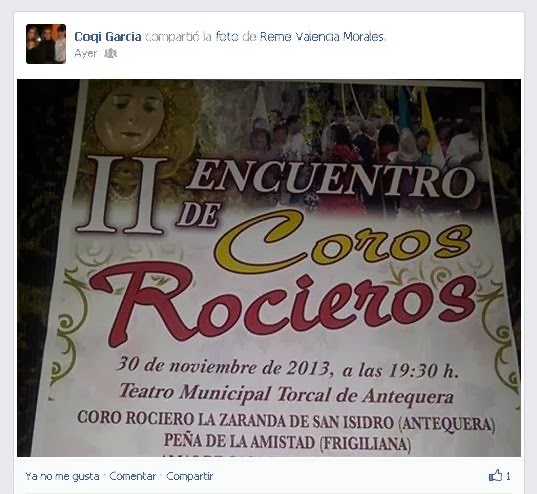 Actos de XIX Aniversario del Simpecado de la Pro-Hermandad del Rocío de Antequera , este acto está organizado por dicha Pro-Hermandad.