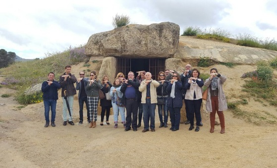 Agentes de touroperadores de llegados de varios puntos de España es están visitando Antequera en un viaje de familiarización para conocer de primera mano algunos de los principales recursos turísticos de la localidad, entre ellos los Dólmenes, donde han querido mostrar su apoyo a la candidatura a Patrimonio Mundial de la Unesco, realizando el gesto de ‘Piedra sobre Piedra’ este jueves.