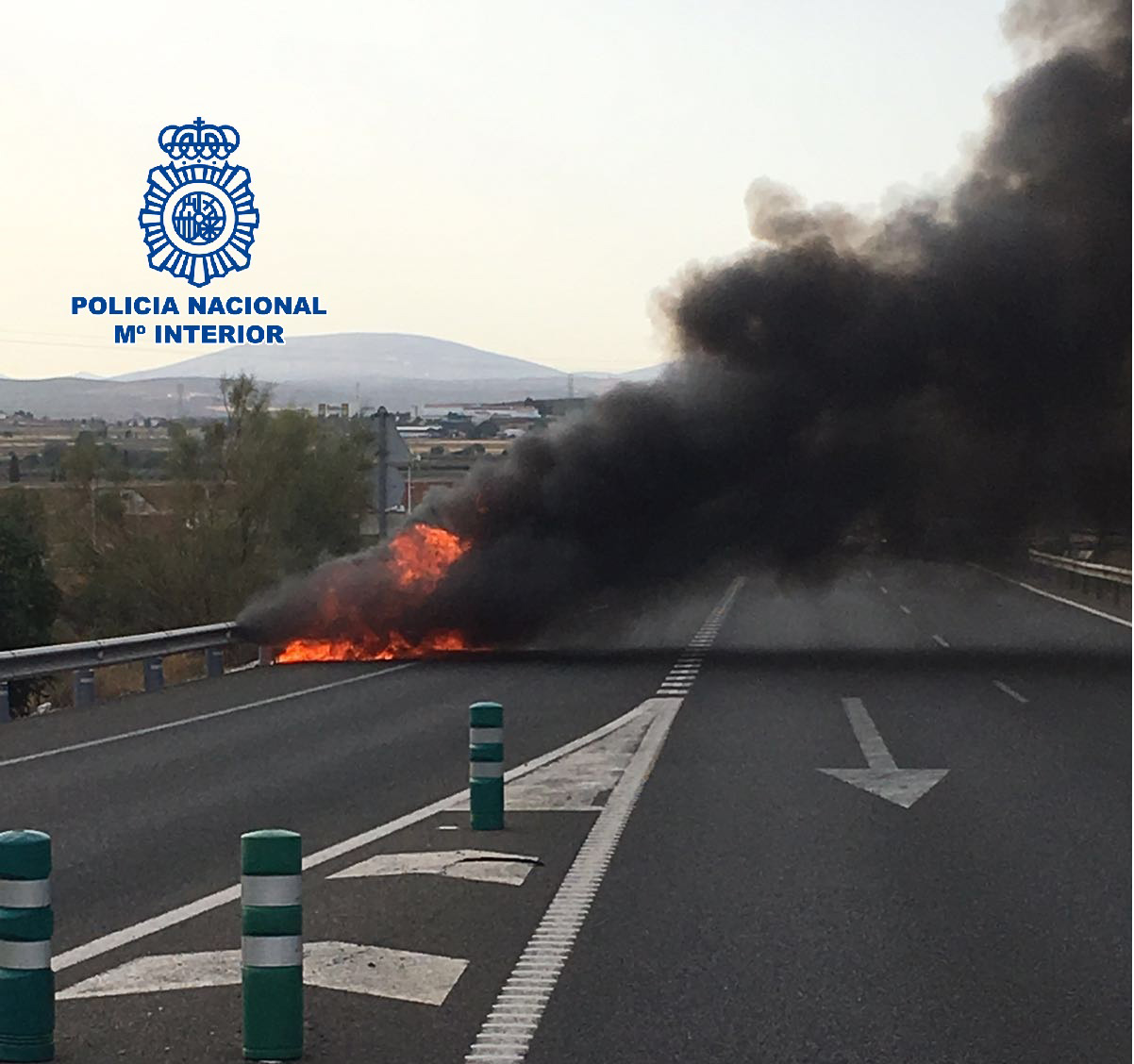 La colaboración ciudadana resultó fundamental una vez más. Tras recibirse varias llamadas en la Sala del 091 los agentes conocieron de la existencia de un vehículo que al parecer había sufrido un incendio en la autovía A-45, en las inmediaciones de la ITV de Antequera -en dirección a Málaga-. Sus ocupantes, según precisaron los testigos, salieron del coche y se dirigían a pie hacia el núcleo urbano de la localidad antequerana.