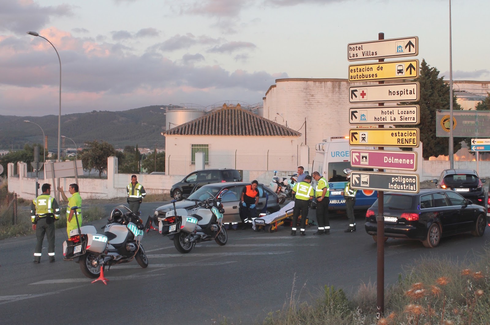 Un turismo y una motocicleta se han visto implicados la tarde noche de este miércoles en un accidente de tráfico en Antequera, en el cruce entre la carretera de Córdoba y la circunvalación norte (A-7282).