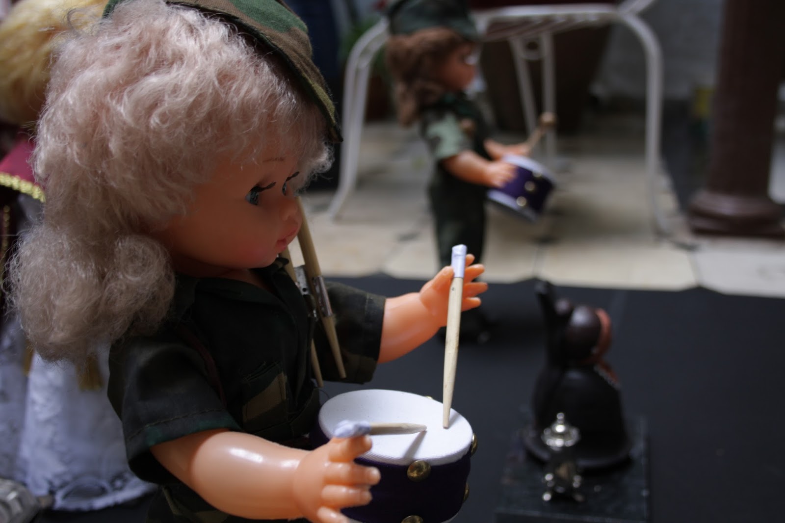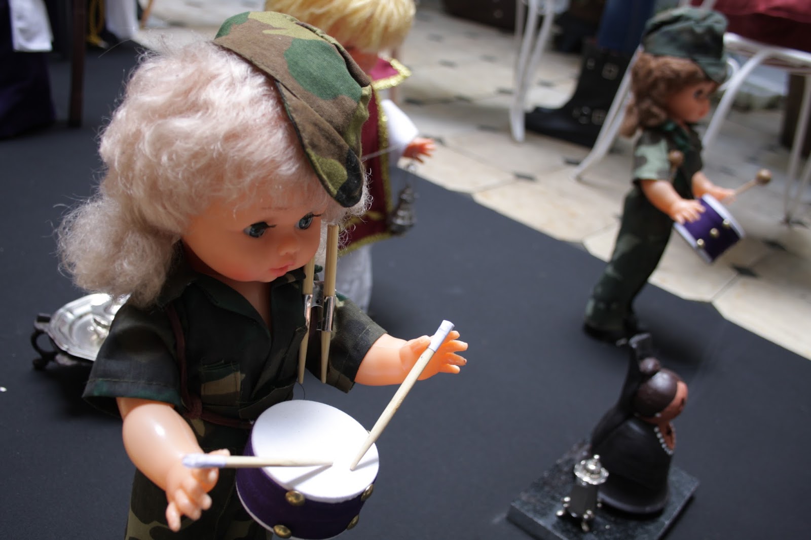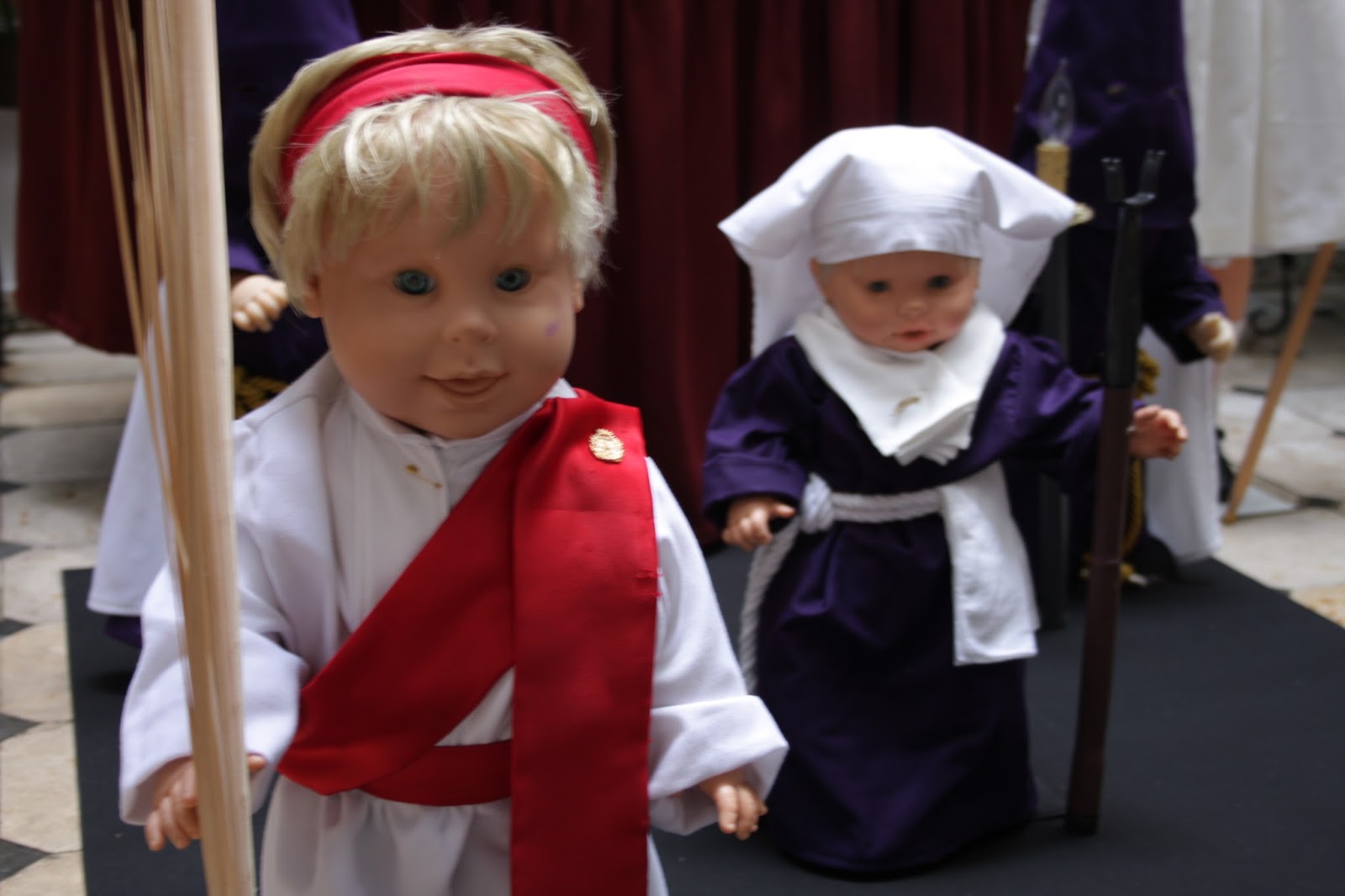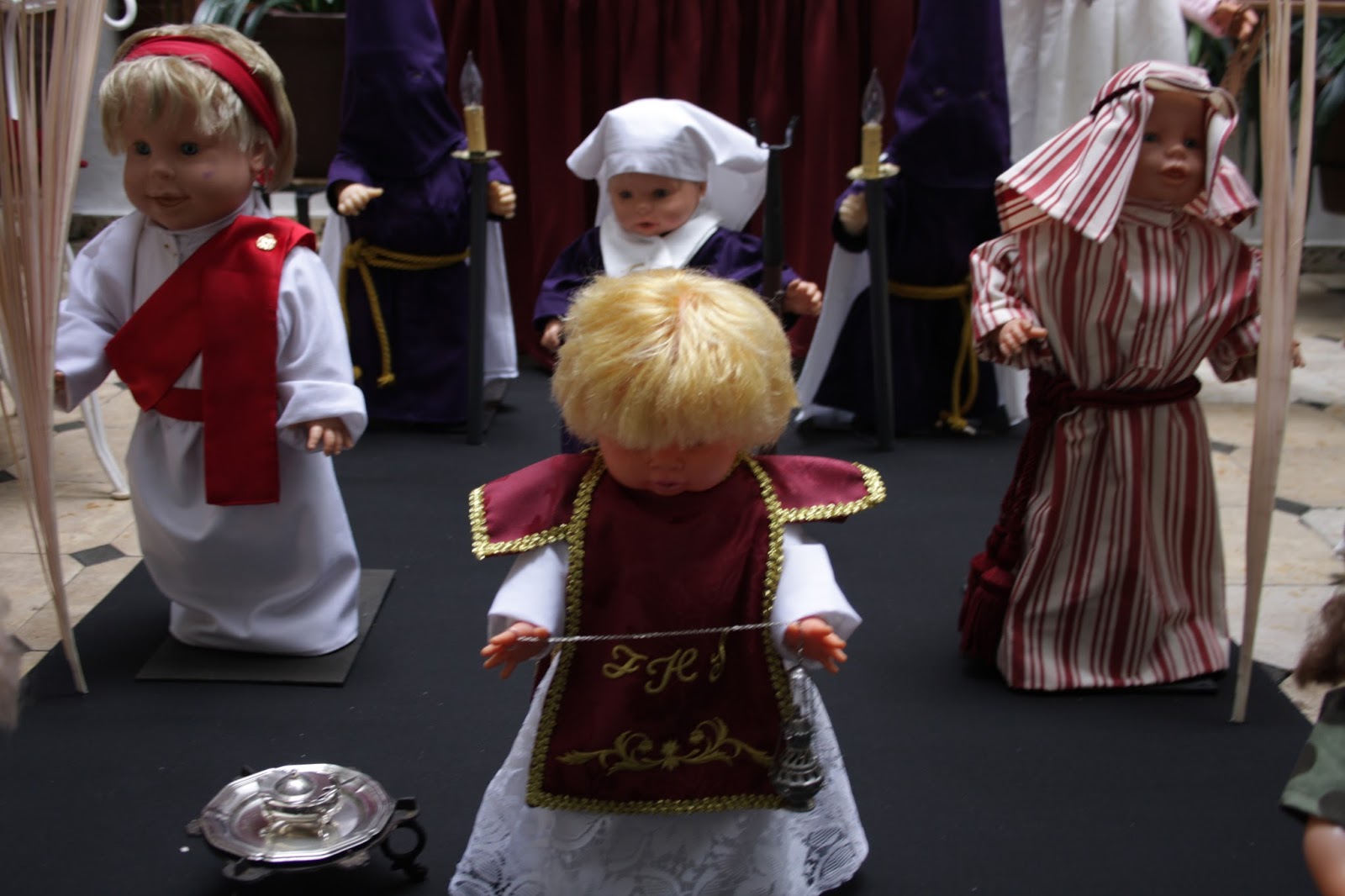 Pequeños penitentes ataviados con su túnicas, portando ciriales, capirotes, incensarios, palmas e incluso una mantilla y alguna que otra legionaria. Todo ello presidido por un Cristo y una imagen de Jesús a su Entrada en Jerusalén.