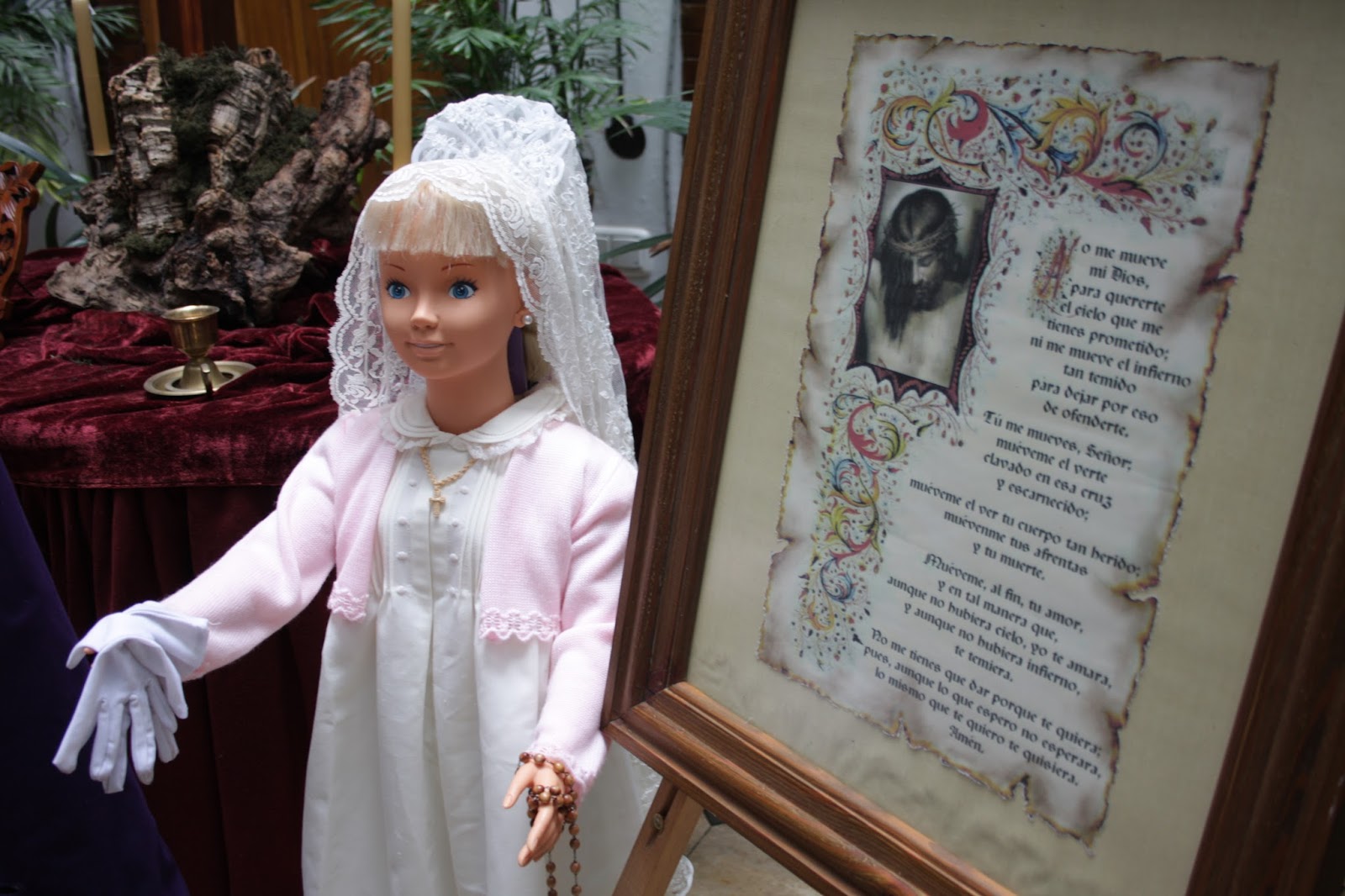 Una de las viviendas de calle Mesones (número 15) esconde un patio decorado con motivos de la Semana Santa antequerana.
