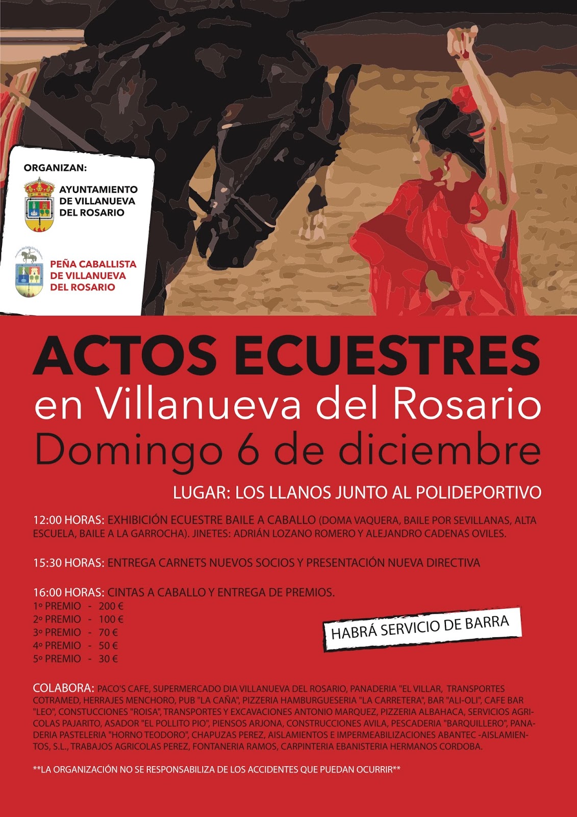 La Peña Caballista de Villanueva del Rosario y el Ayuntamiento han organizado para el próximo día 6 de diciembre una jornada de actos ecuestres en Los Llanos, junto al polideportivo.