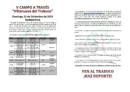 Las inscripciones deberán realizarse antes del viernes 11 de Diciembre, enviando la hoja de inscripción, que encontrareis en la página web del ayuntamiento, a la dirección de correo deportes@villanuevadeltrabuco.es